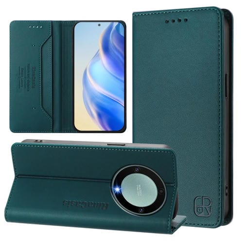 Funda de Cuero con Doble Pliegue y Succión Magnética Rfid para Honor X40 / X9A / Magic5 Lite Rc01 (Verde Oscuro)