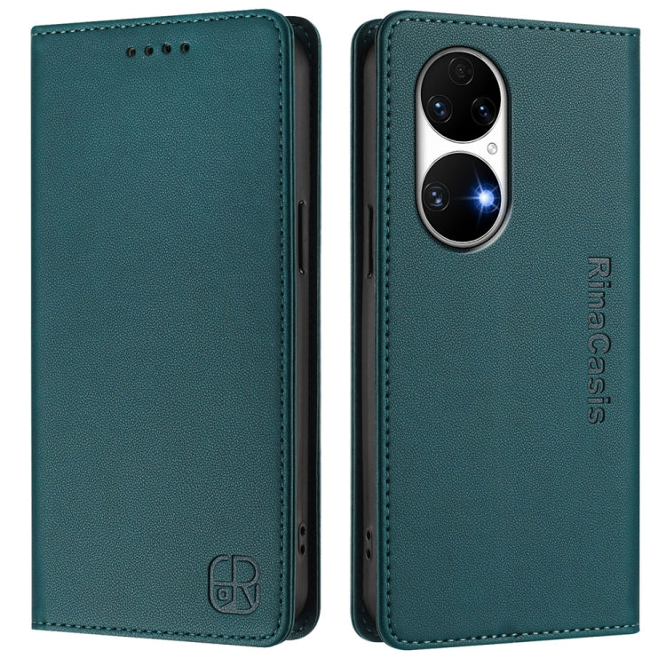 Funda de Cuero Huawei P50 Rc01 con Doble Pliegue y Succión Magnética (Verde Oscuro)