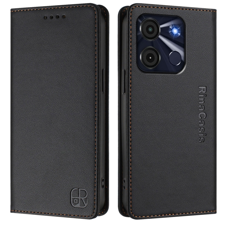 Funda de Cuero Itel A60/60S Rc01 con Doble Pliegue y Succión Magnética (Negra)