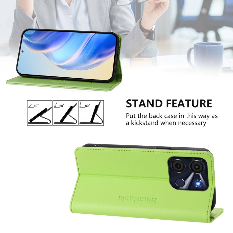 Funda de Cuero Itel A60/60S Rc01 con Doble Pliegue y Succión Magnética (Verde Hierba)