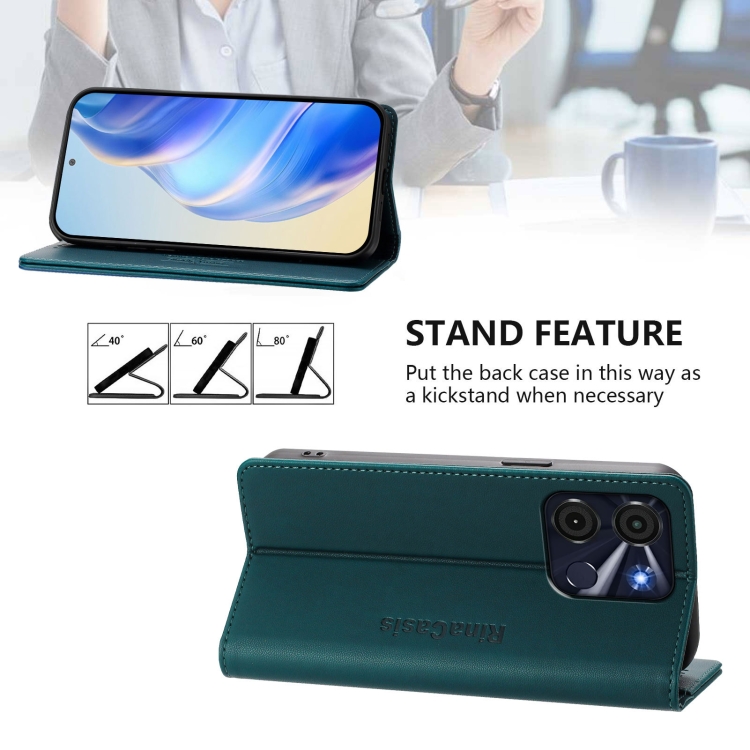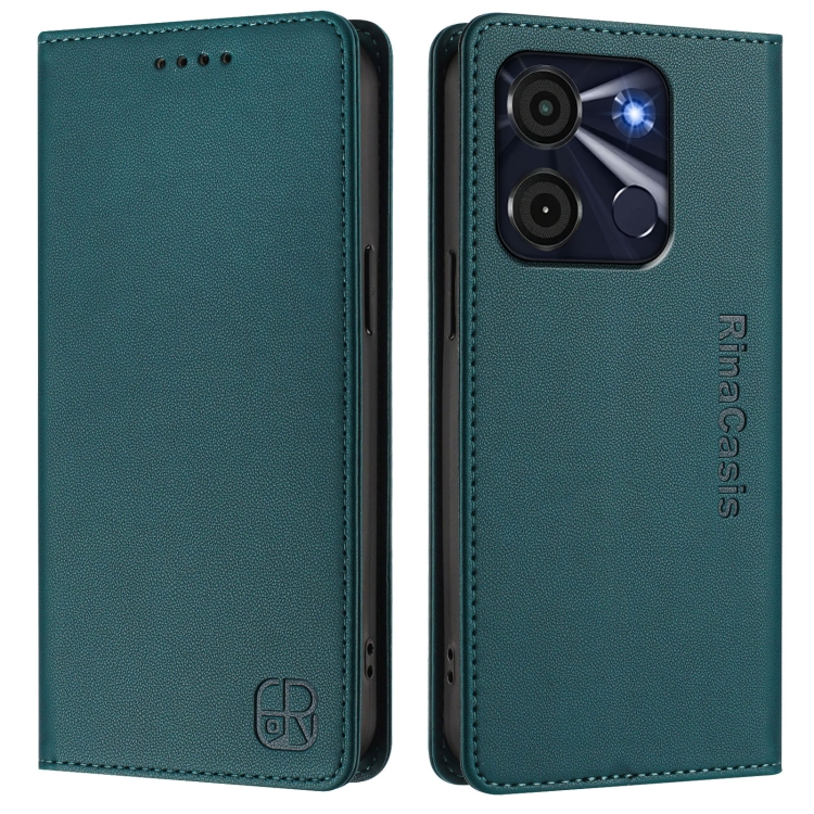Funda de Cuero Itel A60/60S Rc01 con Doble Pliegue y Succión Magnética (Verde Oscuro)