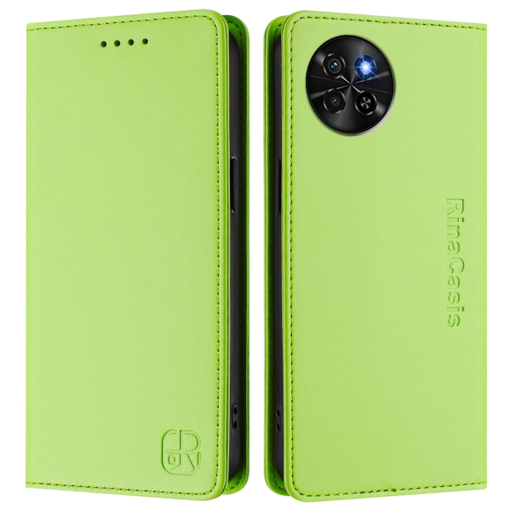 Funda de Cuero Itel S23 S665L Rc01 con Doble Pliegue y Succión Magnética (Verde Hierba)