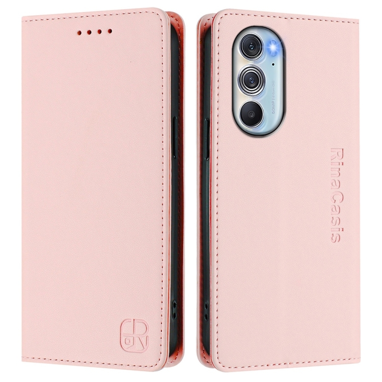 Funda de Cuero Motorola Edge 30 Pro Edge X30 Rc01 con Doble Pliegue y Succión Magnética (Rosa)