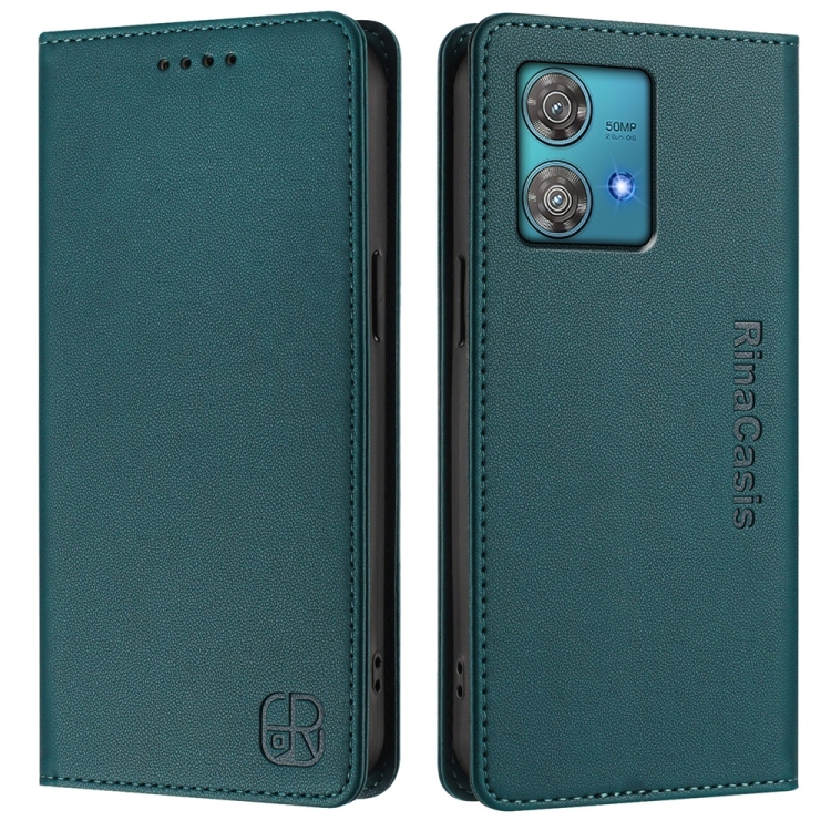 Funda de Cuero Motorola Edge 40 Neo Rc01 con Doble Pliegue y Succión Magnética (Verde Oscuro)