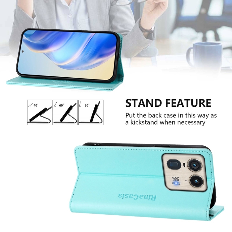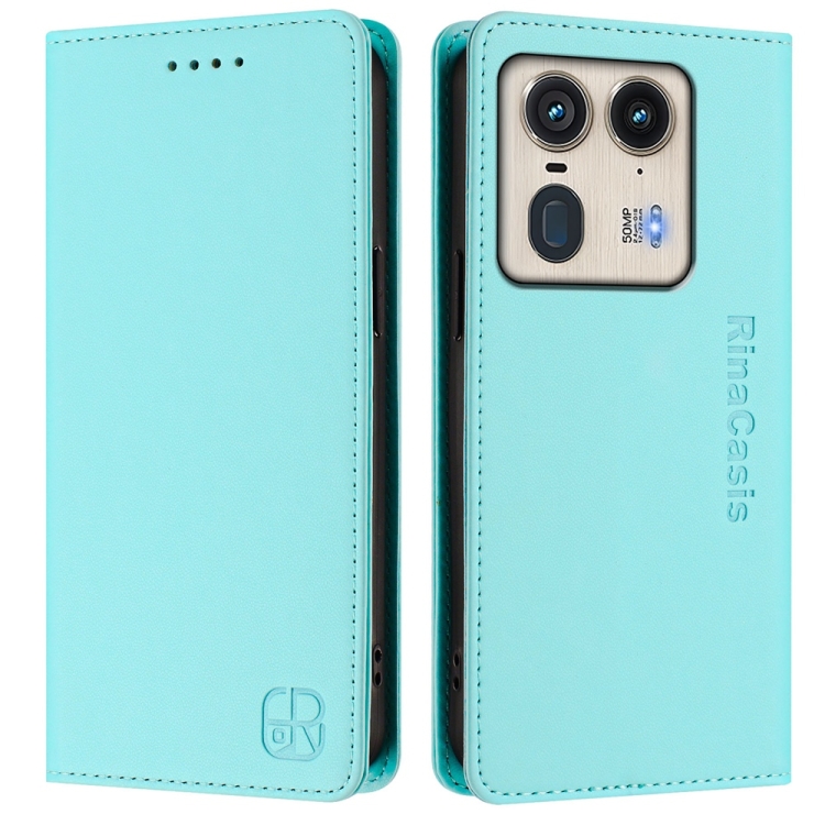 Funda de Cuero Motorola Edge 50 Ultra/X50 Ultra Rc01 con Doble Pliegue y Succión Magnética (Verde Menta)