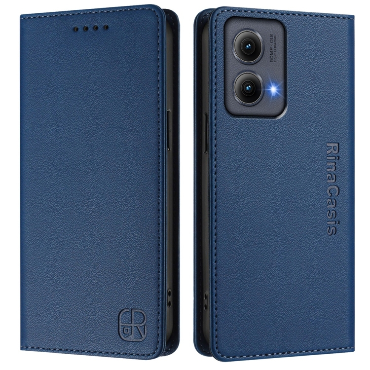 Funda de Cuero Motorola Edge 5G 2024 Rc01 con Doble Pliegue y Succión Magnética (Azul Oscuro)