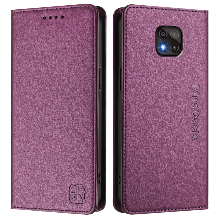 Funda de Cuero Motorola Moto G Power 2021 Rc01 con Doble Pliegue y Succión Magnética (Violeta)