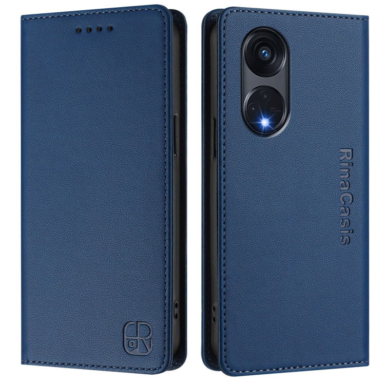 Funda de Cuero con Doble Pliegue y Succión Magnética Rfid para Oppo A1 Pro 5G / Reno8 T 5G Global Rc01 (Azul Oscuro)