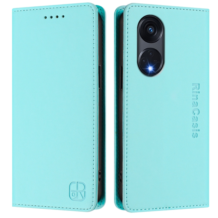 Funda de Cuero con Doble Pliegue y Succión Magnética Rfid para Oppo A1 Pro 5G / Reno8 T 5G Global Rc01 (Verde Menta)