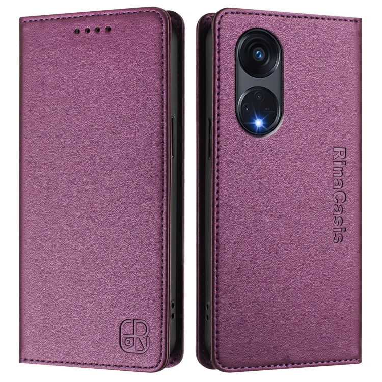 Funda de Cuero con Doble Pliegue y Cierre Magnético Rfid para Oppo A1 Pro 5G / Reno8 T 5G Global Rc01 (Violeta)