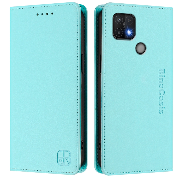 Funda de Cuero con Doble Pliegue y Succión Magnética Rfid para Oppo A15 / A15S / A35 2021 Rc01 (Verde Menta)