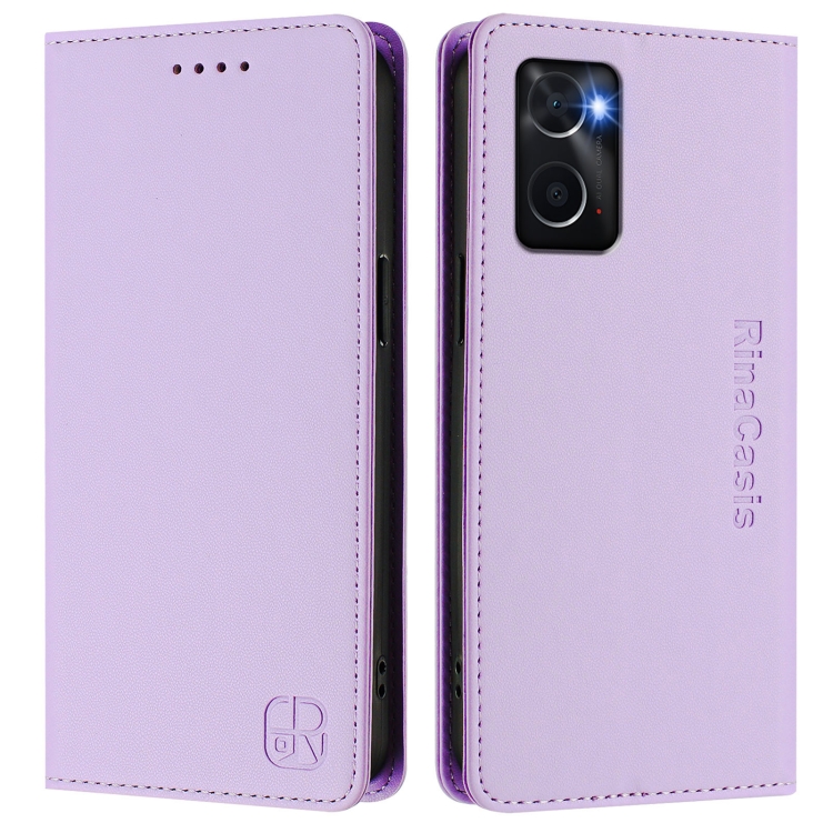 Funda de Cuero con Doble Pliegue y Cierre Magnético con Rfid para Oppo A36 4G / A76 4G / A96 4G / K10 4G Rc01 (Morado Claro)
