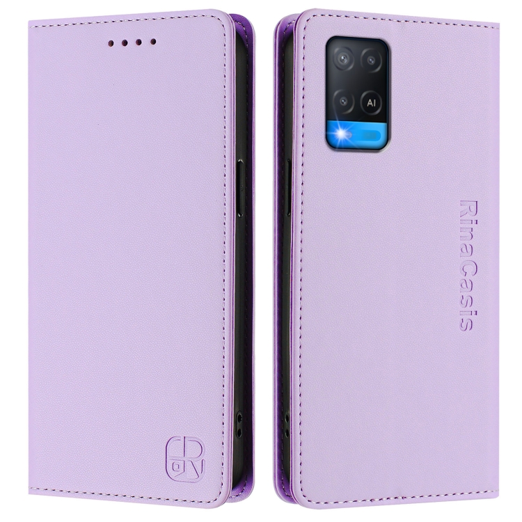 Funda de Cuero con Doble Pliegue y Cierre Magnético Rfid para Oppo A54 4G / A54S / A55 5G / A16 Rc01 (Morado Claro)