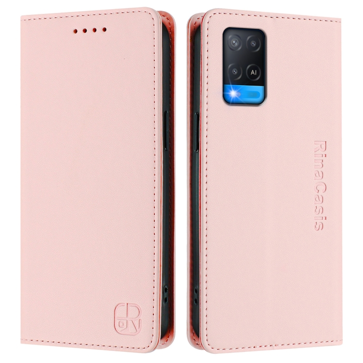 Funda de Cuero con Doble Pliegue y Succión Magnética Rfid para Oppo A54 4G / A54S / A55 5G / A16 Rc01 (Rosa)