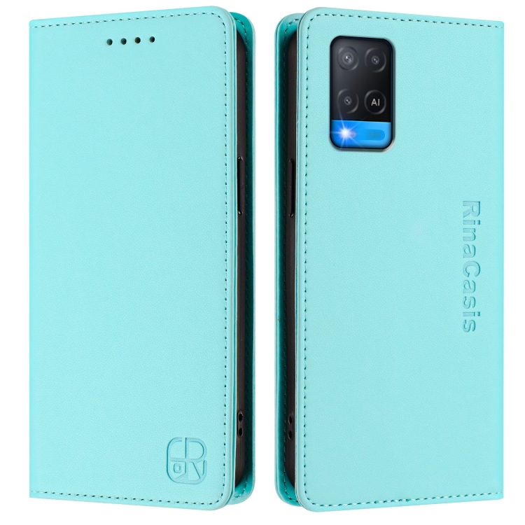 Funda de Cuero con Doble Pliegue y Cierre Magnético Rfid para Oppo A54 4G / A54S / A55 5G / A16 Rc01 (Verde Menta)
