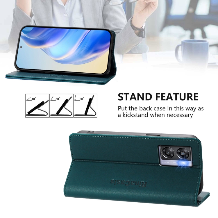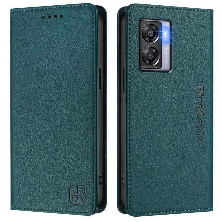 Funda de Cuero con Doble Pliegue y Succión Magnética Rfid para Oppo A77 5G / A97 5G Rc01 (Verde Oscuro)