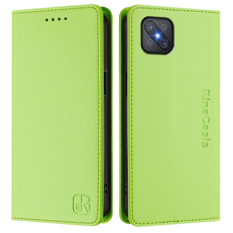 Funda de Cuero con Doble Pliegue y Succión Magnética Rfid para Oppo A92S 5G Rc01 (Verde Hierba)