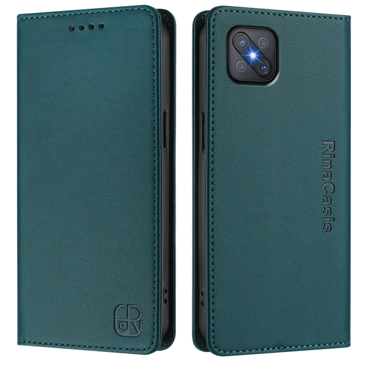 Funda de Cuero con Doble Pliegue y Succión Magnética Rfid para Oppo A92S 5G Rc01 (Verde Oscuro)