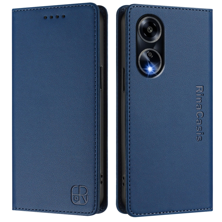 Funda de Cuero con Doble Pliegue y Succión Magnética Rfid para Oppo A98 5G / F23 5G India Rc01 (Azul Oscuro)
