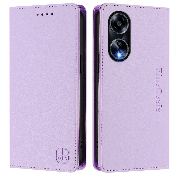 Funda de Cuero con Doble Pliegue y Succión Magnética Rfid para Oppo A98 5G / F23 5G India Rc01 (Morado Claro)