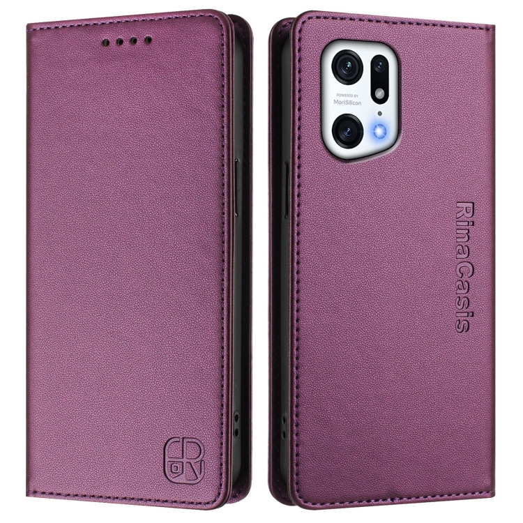 Funda de Cuero con Doble Pliegue y Succión Magnética Rfid para Oppo Find X5 Pro Rc01 (Violeta)
