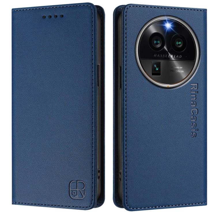 Funda de Cuero con Doble Pliegue y Succión Magnética Rfid para Oppo Find X6 Pro Rc01 (Azul Oscuro)