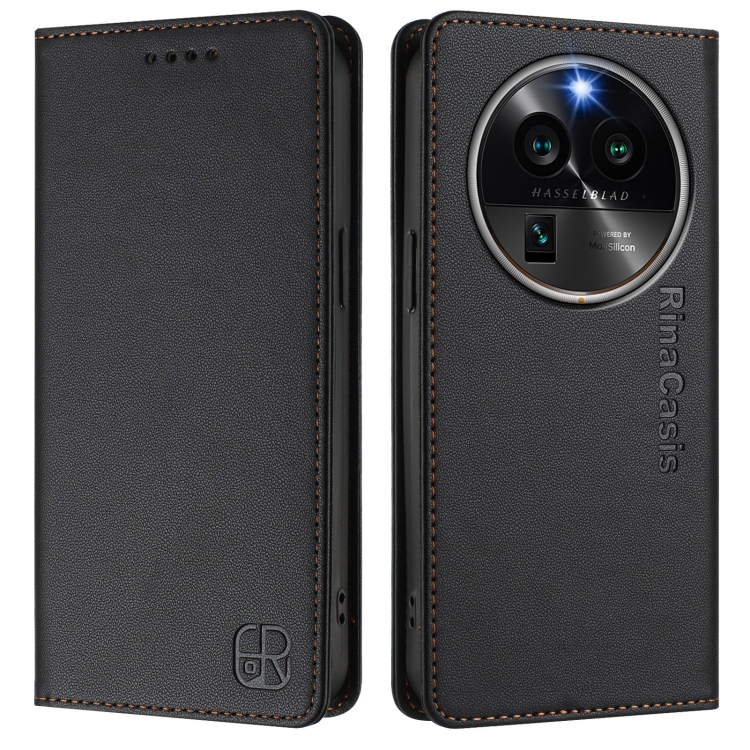 Funda de Cuero con Doble Pliegue y Succión Magnética Rfid para Oppo Find X6 Pro Rc01 (Negra)