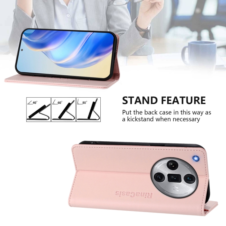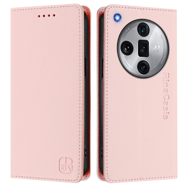 Funda de Cuero con Doble Pliegue y Succión Magnética Rfid para Oppo Find X7 Ultra Rc01 (Rosa)