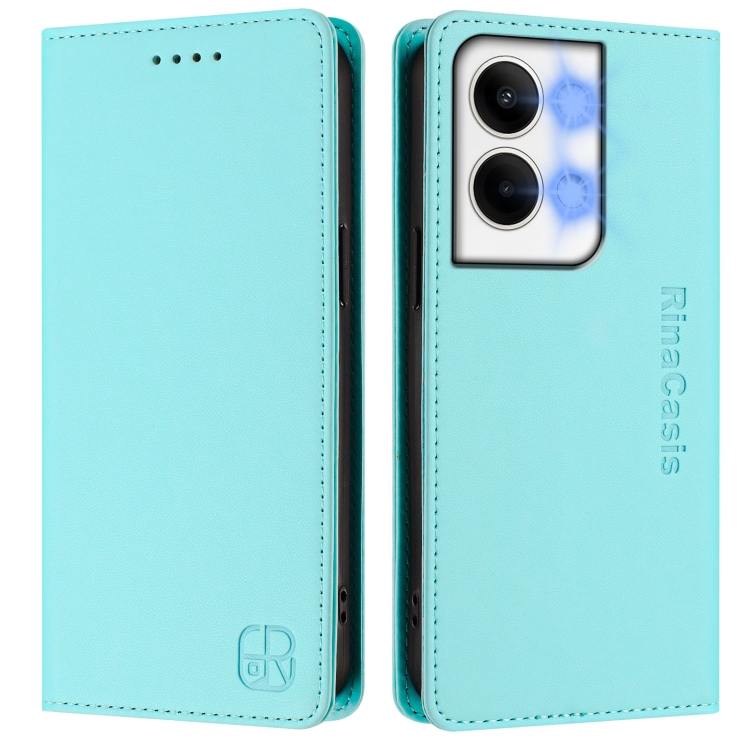 Funda de Cuero con Doble Pliegue y Cierre Magnético Rfid para Oppo Reno9 5G / Reno9 Pro 5G Rc01 (Verde Menta)