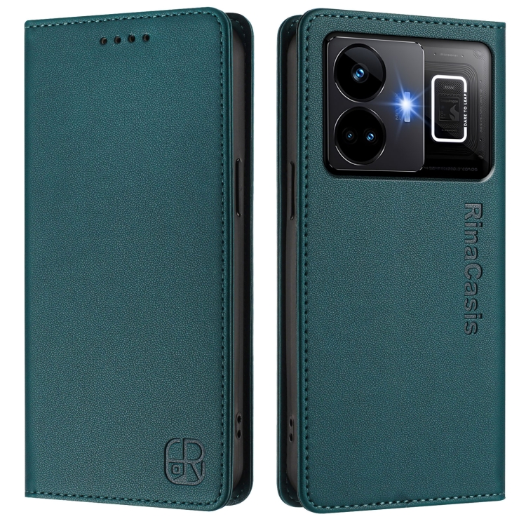 Funda de Cuero con Doble Pliegue y Succión Magnética para Teléfono Realme Gt3 5G / Gt Neo 5 240W Rc01 (Verde Oscuro)