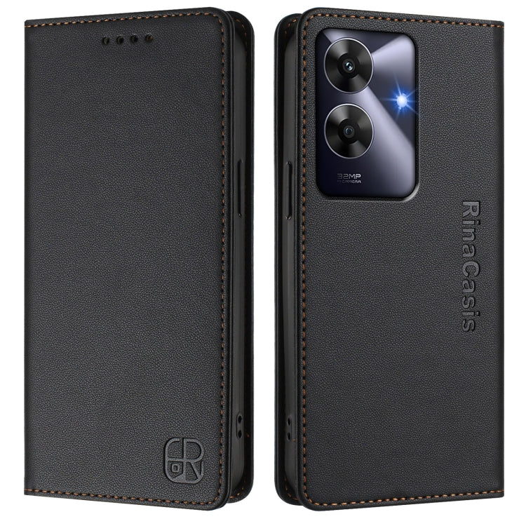 Funda de Cuero con Doble Pliegue y Succión Magnética para Teléfono Realme Note 60 4G/C61 4G India Rc01 (Negra)