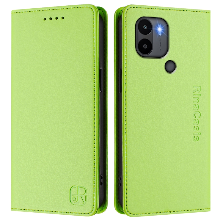 Funda de Cuero con Doble Pliegue y Succión Magnética para Teléfono Redmi A1+ 4G / Xiaomi Poco C50 4G Rc01 (Verde Hierba)