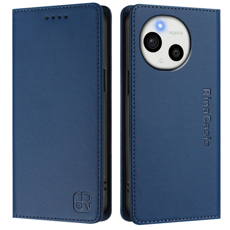 Funda de Cuero con Doble Pliegue y Succión Magnética RFID para Sharp Aquos Sense9 Plus Rc01 (Azul Oscuro)