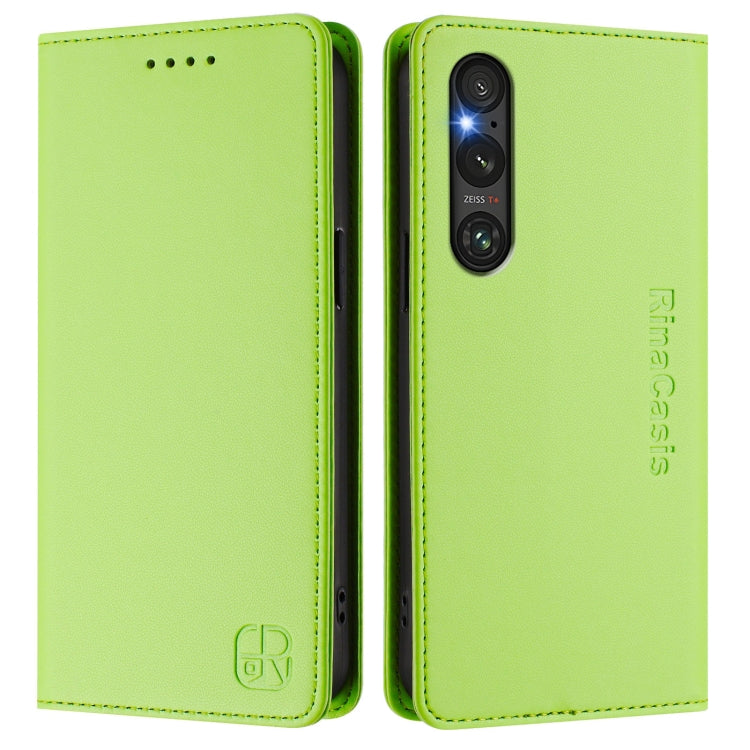 Funda de Cuero con Doble Pliegue y Succión Magnética para Sony Xperia 1 V (2023) (Verde)