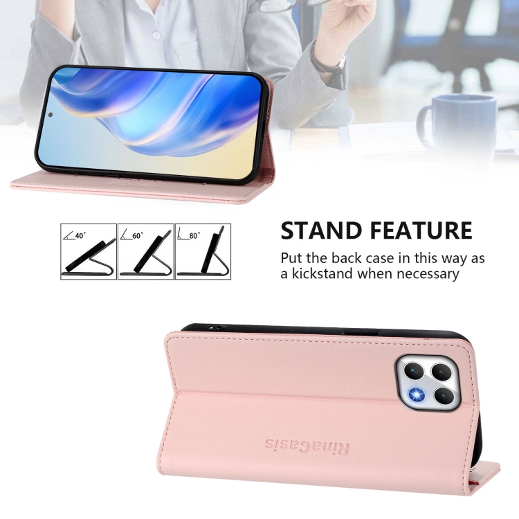 Funda de Cuero con Doble Pliegue y Succión Magnética para T-Mobile Revvl 7 5G Rc01 (Rosa)