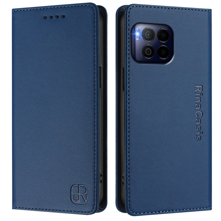 Funda de Cuero con Doble Pliegue y Succión Magnética para T-Mobile Revvl 7 Pro 5G Rc01 (Azul Oscuro)