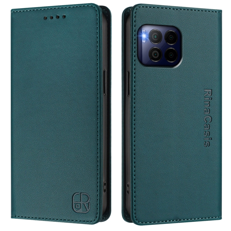 Funda de Cuero con Doble Pliegue y Succión Magnética para T-Mobile Revvl 7 Pro 5G Rc01 (Verde Oscuro)