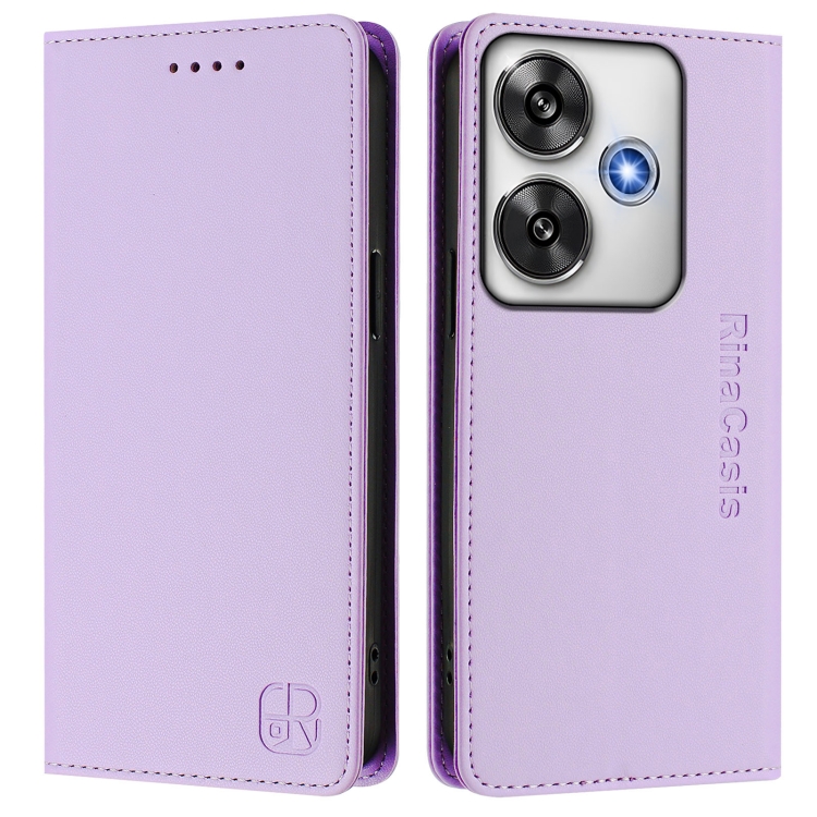 Funda de Cuero con Doble Pliegue y Succión Magnética para Teléfono Xiaomi Poco F6 5G Rc01 (Morado Claro)