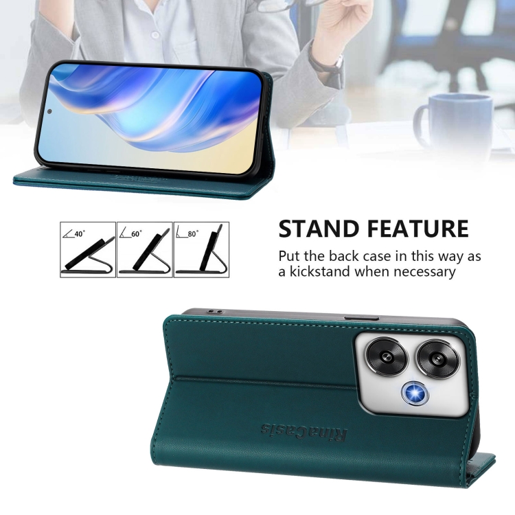 Funda de Cuero con Doble Pliegue y Succión Magnética para Teléfono Xiaomi Poco F6 5G Rc01 (Verde Oscuro)
