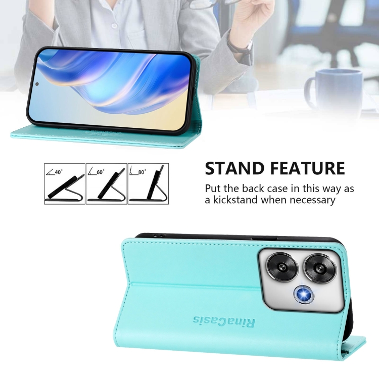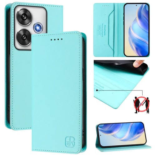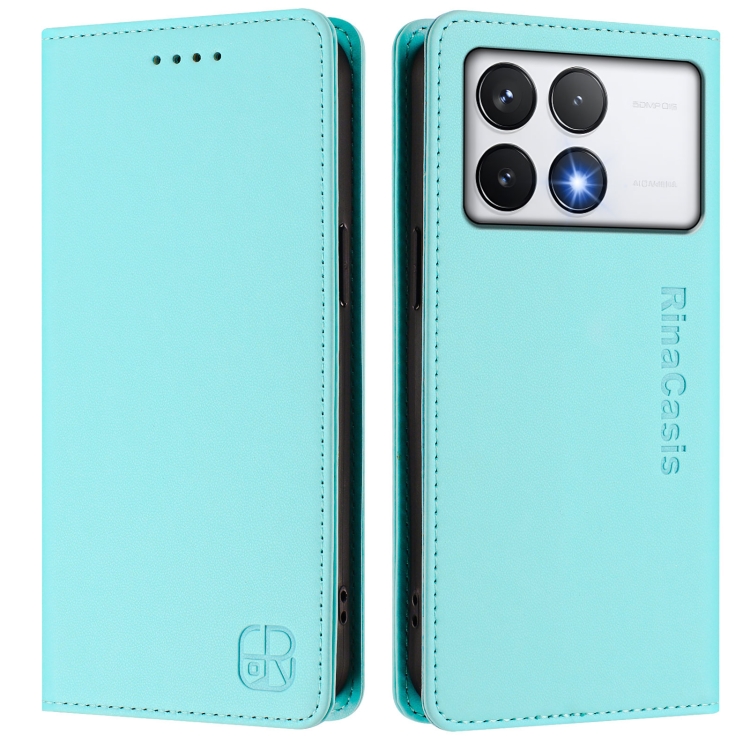 Funda de Cuero con Doble Pliegue y Succión Magnética para Teléfono Xiaomi Poco F6 Pro 5G Rc01 (Verde Menta)