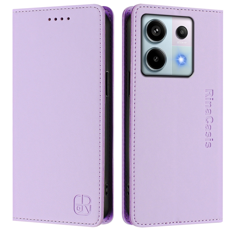 Funda de Cuero con Doble Pliegue y Succión Magnética para Teléfono Xiaomi Poco X6 5G/Redmi Note 13 Pro 5G Rc01 (Morado Claro)