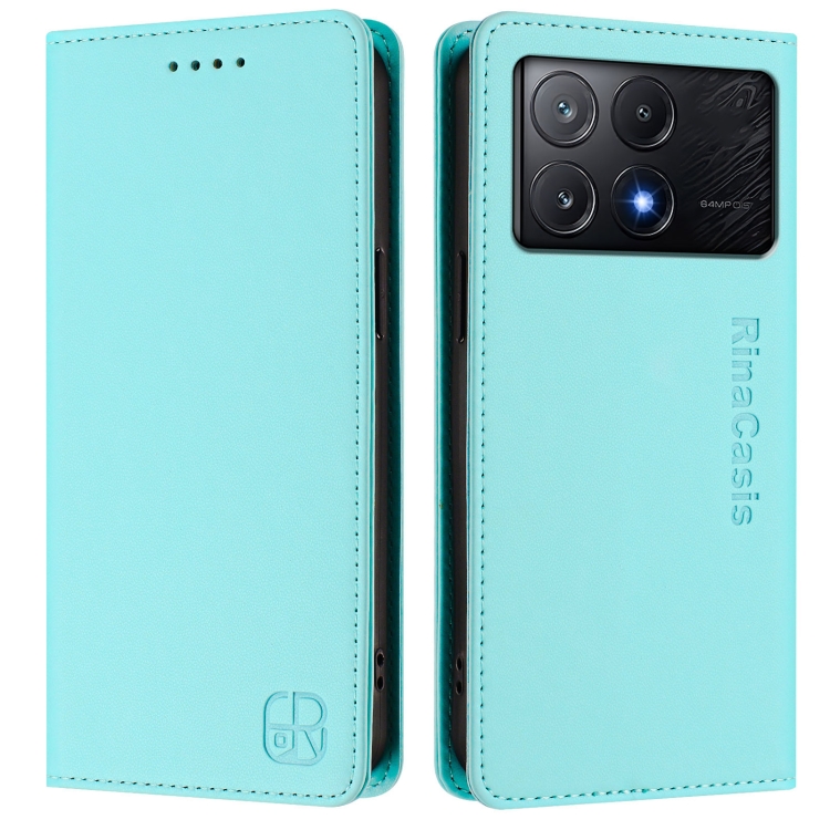 Funda de Cuero con Doble Pliegue y Succión Magnética para Teléfono Xiaomi Poco X6 Pro/Redmi K70E Rc01 (Verde Menta)