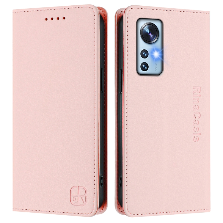Funda de Cuero con Doble Pliegue y Succión Magnética para Xiaomi 12 5G / 12X 5G / 12S 5G Rc01 (Rosa)