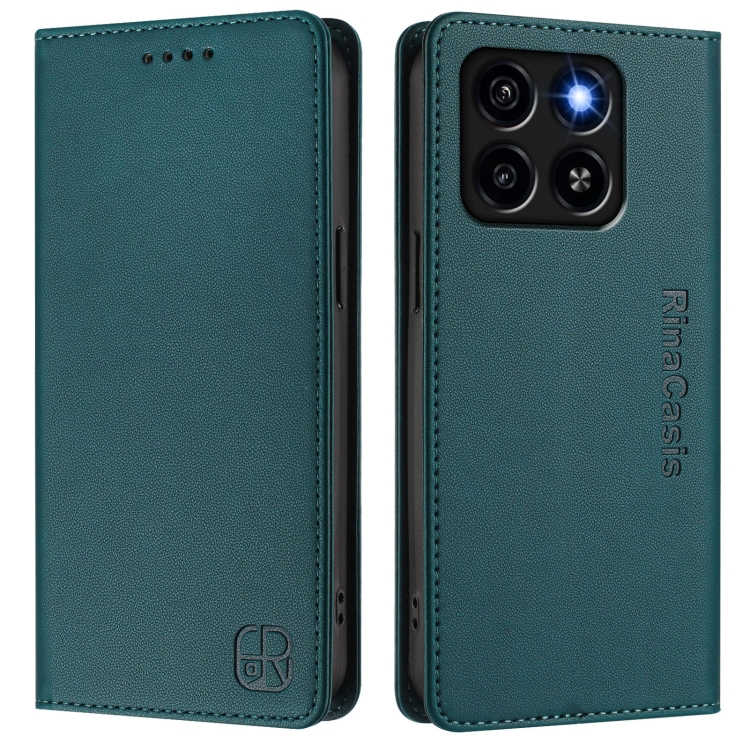 Funda de Cuero para ZTE Blade A35/A55 Rc01 con Doble Pliegue y Succión Magnética (Verde Oscuro)