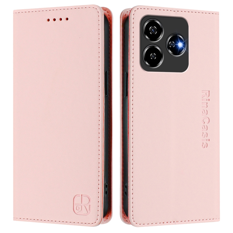 Funda de Cuero con Doble Pliegue y Succión Magnética para ZTE Blade V60 4G / Axon 60 4G Rc01 (Rosa)