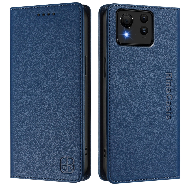 Funda de Cuero con Doble Pliegue y Succión Magnética Rfid para Asus Zenfone 11 Ultra Rc01 (Azul Oscuro)