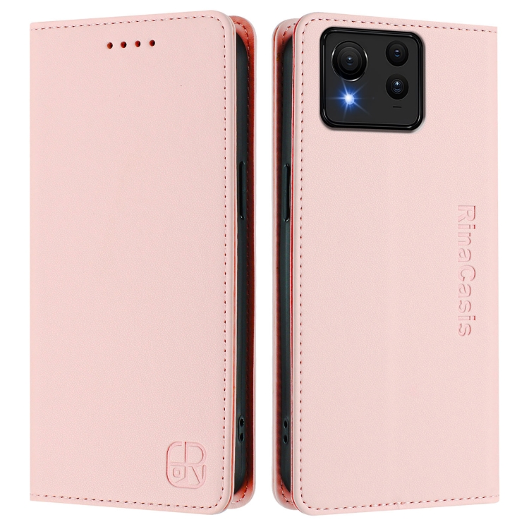 Funda de Cuero con Doble Pliegue y Succión Magnética Rfid para Asus Zenfone 11 Ultra Rc01 (Rosa)