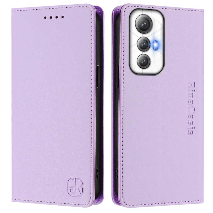 Funda de Cuero para Cubot Max 5 Rc01 con Doble Pliegue y Succión Magnética Rfid (Morado Claro)