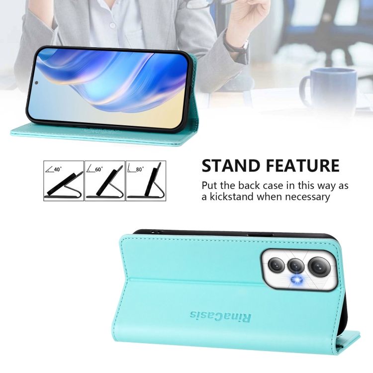 Funda de Cuero para Cubot Max 5 Rc01 con Doble Pliegue y Succión Magnética Rfid (Verde Menta)