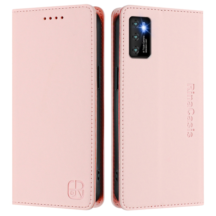 Funda de Cuero con Doble Pliegue y Succión Magnética RFID para Cubot P50 Rc01 (Rosa)